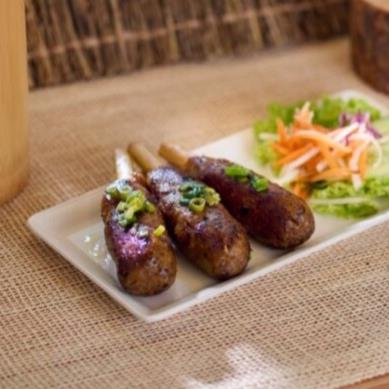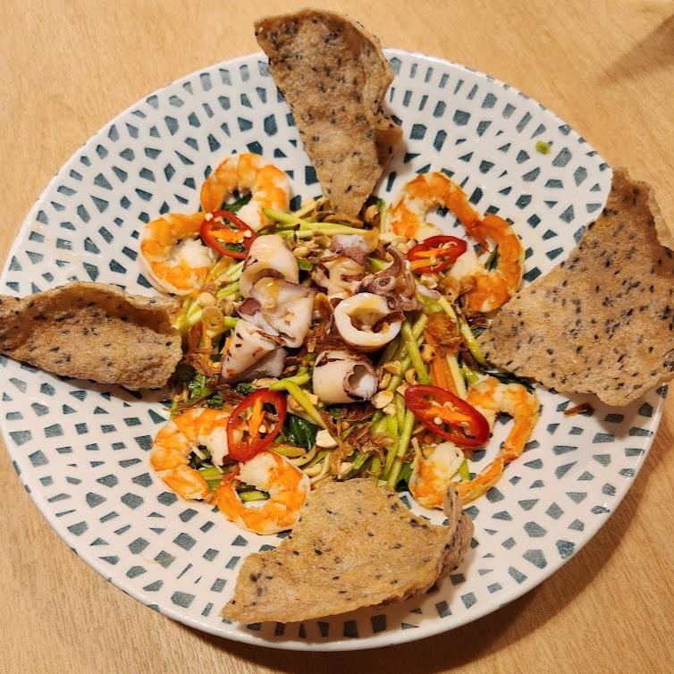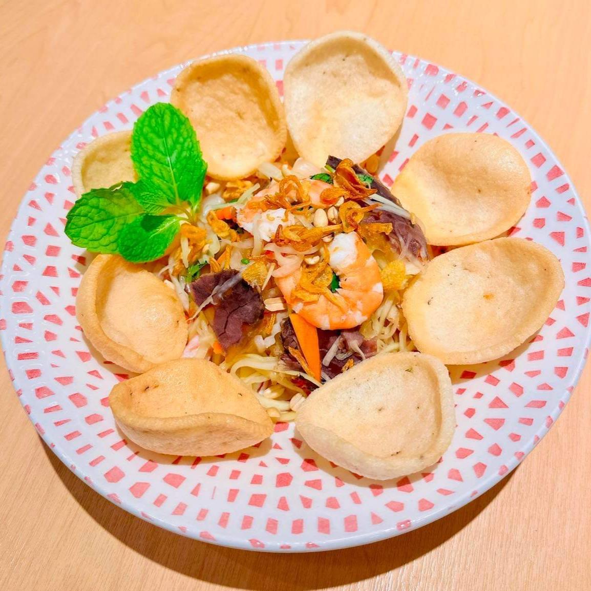 Vietnamese dry noodles with grilled meat and Chef's fish sauce.