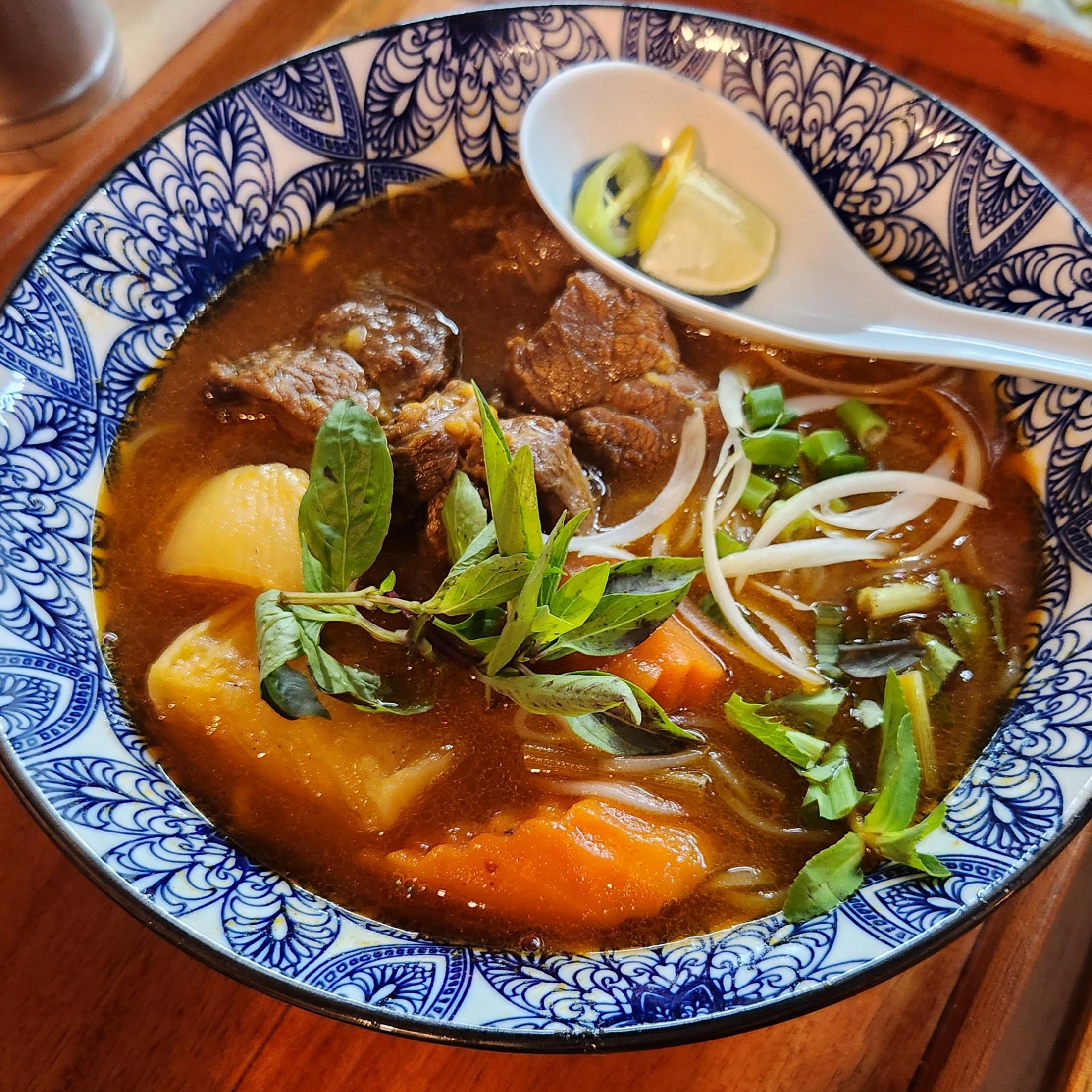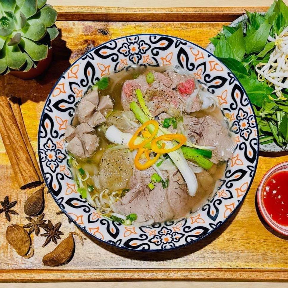 Traditional Vietnamese rice plates with grilled meats, vermicilli egg chiffon, root pickles and a side of Pho soup for dine in customers.